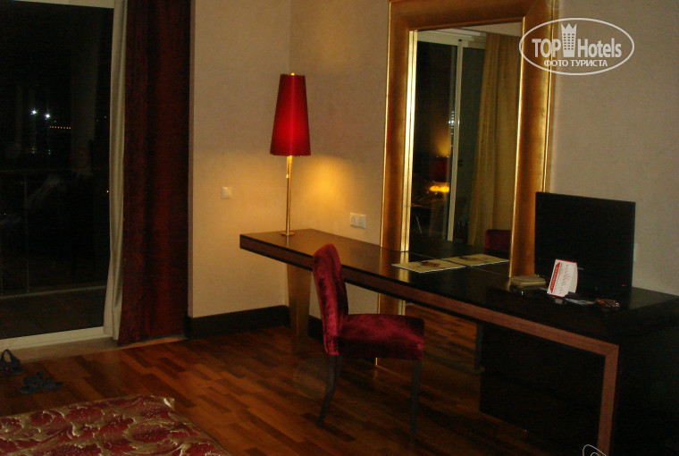 Заселили на первую ночь в основное здание! В номер с видом на море! Как и три года назад - все понравилось! Красивый, колоритный номер с позолотой и бархатом. Мягкими перинами и совершенно незабываемой панорамой с балкона.. - что еще нужно усталому путнику?!))))) на след день переселили в наш Делюкс! - тоже классно.. Светлый, новый номер! С хорошей мебелью, и очень просторный! Напишу сразу- все Делюксы имеют вид на море!!