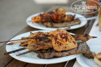 4) Питание хорошее. Но, однообразное на завтраках. Однако, это не потревожило наш отдых. Ужин более разнообразный, возможно, вам удастся попасть на открытие вечернее ресторана, когда встречает персонал и шеф повар. Советую сходить в ресторан Барбекю рядом с морем (10 евро/чел + алкоголь бесплатный). Предлагают кучу видов мяса на выбор и при вас готовит повар на гриле вкуснейшие стейки. Еще мы ходили в рыбный ресторан Посейдон, но лучшее из него это десерт.. оочень вкусный..а так, не знаю, почему ресторан называется рыбным.. ведь выбора рыба там нет никакого. В других ресторанах мы не были, но, девушка на ресепш советовала Турецкий ресторан. Около бассейна есть в течении дня мороженое на выбор, фрукты, снеки, закуски.