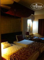 Заселение прошло за 10 минут,бронировали в Москве стандартный номер в бунгало,парень на ресепшн предложил номер в корпусе,в Москве переплата была бы 9000р.,в отеле на месте заплатили всего 50S. Номер большой, с ванной. Уборка ежедневная со сменой полотенец, раз в два дня смена белья. В холодильнике по 4-6 бутылок воды (кола,фанта и минералка).В конце отдыха испорчено настроение, в ванной плохо закреплена была душевая стенка, в предпоследний день она упала на мужа прямо в ванной и разрезала его всего. Вместо помощи и извинений с нас взяли 30 долларов, просили, правда 100(сторговались).