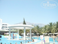Территория отеля весьма уютна, есть и тихий бассейн, активный, детский, горки, детский городок. Нашим детям и на море ходить не хотелось, все весьма комфортно. До моря идти мин 5 мимо парка, сам пляж небольшой, мы там бывали с утра, посему было в принципе чисто, лежаки почти до самой воды, что нам лично было удобно.