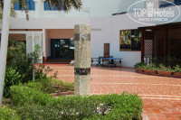 Территория компактная, уютная. Между отелем и морем небольшой садик. Справа от отеля, с торца детская площадка, но расположена так, что про нее толком и никто не знает.