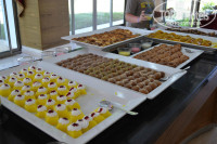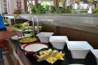 5. Питание. Тут конечно написать можно много. Кто то пишет гадости от разочарования, кто то хвальбы не знаю за что, я лишь могу написать что разнообразной еды было в изабилии, но каждый день одно и то же. Очень много овощей в разных видах. Рабы, курица была всегда, тунца давали по пятницам жарили на гриле, после обеда и во время каждый день делали бургеры с картошкой фри, очень забавный повар похожий на Куклачева, который очень похоже издает звуки различных животных, тем самым как то развлекая очередь за едой)). Колбаса сосиски и все подобное естественно голимая соя, но местным котам она очень даже приходится по вкусу)) Хозяйские спаниэли предпочитали больше тунца, а к колбасу даже не нюхали)) видимо понимают толк)) Мне пришлись по вкусу турецкие лепешки пиде с фаршем, запекали вкусные овощи в печи. Одним слово не ресторан конечно же, но голодными не останетесь точно. Фруктами мы не питались, покупали каждый день на улице клубнику, черешню, шелковицу. Очень не приятно смотреть на оголодавших соотечественников, которые с безумными глазами сооружают невероятные конструкции из еды на своих тарелках, а потом даже не патыются все это поглотить. Друзья, будьте культурнее и умерьте свои аппетиты до реальных размеров, а то иной раз даже становилось стыдно, потому иммено из-за таких людей русских считают там свиньями.