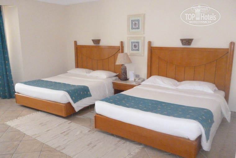 В сам отель прибыли около 10 утра, и хотя заселение здесь официально в 14.00, номер нам дали уже спустя 20 минут причем безо всяких денег и к тому же вместо стандартного одноместного с раскладушкой для ребенка, который мы заказывали в туре, дали просторный двухместный номер с двумя большими двуспальными кроватями. Правда оговорюсь, что отель был заполнен не в полной мере а номер оказался на самом отшибе отеля. Позже заметил что в основном в такие дальние номера селят только наших соотечественников (ну естественно если Вы не предложите им денег за более близкое расположение)