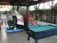 7. БАССЕЙНЫ. Есть маленький отдельный бассейн, видимо, для игры в волейбол. Основной бассейн поделён на несколько секций: маленькая для детей, и ещё 2 части, в одной из которых по утрам проводят зарядку и конкурсы. Бассейн отличный, большой и не слишком мелкий. Никаких официальных объявлений по поводу купания нет, но мы заметили, что где-то в 7 часов вечера в бассейны добавляли химию, так что после 7 лучше не купаться (хотя если не предупреждали, значит, она не на столько вредна). Но в любом случае в августе после этого времени и не поплаваешь, потому что очень быстро темнеет.