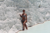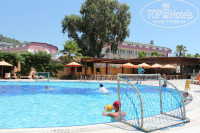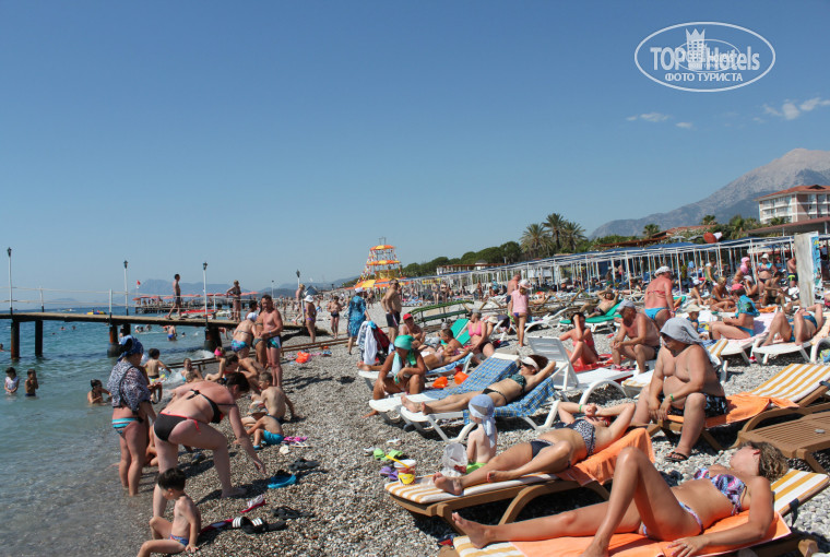 Во первых хотелось-бы поблагодарить компанию Тезтур, они как всегда на высоте. Долетели нормально, в Анталии были где-то 17-30. Ну что, добирались до отеля около 2-х часов, надо сказать , что отель находится в поселке Кириш, и пока всех развезли наш отель оказался последним в списке, ну да ладно, очень быстро заселили-номер на последнем этаже-простой , очень небольшой(надо сказать я ездила с сыном 14 лет), но кровать оказалась общей-не стала просить др.номер, т.к. на ресепшене слышала, как девушка жаловалась, на то что их заселили в номер на цокольном этаже и там пахнет сыростью и вообще свободных номеров пока нет. В номере все необходимое есть(чисто, уютно, не воняет, телевизор с пятью русскими каналами, холодильник, санузел с гельчиками и шампуньчиками))) На ужин мы успели, была удивлена очень много людей, иногда даже приходиться ждать пока освободиться столик. Питание нормальное, фруктов много (дыни, арбузы, бананы, абрикосы, черешня и др.), очень скудно со сладостями, напитки разнообразные и алкогольные и без. Территория отеля очень маленькая,Анимация на троечку с+, но вечером можно спокойно прогуляться по местным лавочкам или съездить в Анталию на какую -нибудь экскурсию. До пляжа 3 мин ходьбы. Из экскурсий очень понравилось на Памукалле. Вообще советую отель -спокойный.