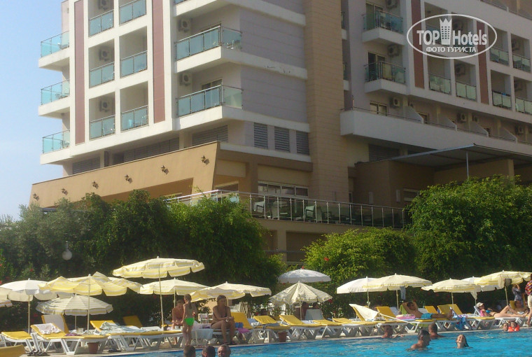 Отель чистая тройка, или в мире звезд что-то поменялось или это не 5. Стоимость поездки 50 000 на двоих за 6 ночей. День первый: прилет в Анталию и 2,5 часа до отеля. По призду нас отправили на ужин (сразу не заселяют) хотя хотелось принять душ. На ресепшене уже был скандал - к гражданину в номер пустили даму, якобы супругу, он был возмущен, однако по мнению работников отеля, если ничего не украли это не проблема. После ужина нам выдали 1 ключ на двоих, что совершенно мешало свободному самостоятельному отдыху. Пои этом господин- я донесувашивещи был очень возмущен, что мы отказались от его услуг (заработать не дали) и долго нам объяснял, что сами мы номер не найдем. Действительно, очень сложно найти номер, если персонал не называет корпус и более того не показывает даже нужное направление к нему))) нам потребовалось 2 мин и логическое мышление отправило нас в нужном направлении. Заселили нас (2 барышень) в 3 местн номер, соответственно с двуспальной и односпальной кроватями, не были б подругами, возмутились бы. День 2-5 : общая картина))) Еды в принципе достаточно, с мясным проблема, мужчины жалуются, девочкам хватает. За всем мясным огромные долгие очереди, выдается оно по чуть-чуть работниками. Еда кисловатая, мы предположили, что это из-за жары ( надеемся, что она изначально такая, чтобы не пропадали молочные продукты) у бассейна кушать было вкуснее. Вода в холодильнике лежала по приезду, потом надо было брать у горничной, которая никогда не отказывала. Убирали каждый день, мы все ждали правда лебедей, но так и не дождались))) по сравнению с общим сервисом, горничная была лучшей. Кормят постоянно, если знать куда и когда ходить. 3 раза в день мороженое у бассейна, хотч туркам его дают красиво по 3 шарика, нам клали один (рожок), благо хоть детей не обделяли. Посетили мы 'рестораны' сначала барбекю, где кроме еды из столовой получили мини шашлычки из курицы, там же в баре дама задала сокроментальный вопрос: почему русским дамам наливают вино в пластиковые стаканы, а турецким даже воду в бокалах подают? После были еще в асманском ресторане, где получили еду из столовой + рис с говядиной. В рыбный даже не пошли. Из фруктов каждый день арбуз и дыня, дважды были еще и яблоки, а-ля дичка и один раз апельсины. Столовые приборы явились дефицитом, особенно вилки, особенно если вы пришли за полчаса до окончания приема пищи, пару раз ели столовыми ложками ( ели за 15 минут, график не нарушали, но поняли поче у ажиотаж у людей). Официанты умудряютя очень навязчиво приставать. Море оказалось грязным все дни, берег и его проблмы нас не волновали, по описанию отеля знали куда едем, но в море искупались один раз. Все время проводили у бассейна, там, где нет горок, чисто, во втором вода мутная. В закрытый не ходили, но он рядом и с видо тоже чистый. В бассейне много турецеих дам, которые соответственно купаются в полном обмундировании, спасибо, что не в обуви, я уважаю любую религию, но такая антисанитария создает дискомфорт, думаю, еслибы я плюхнулась в воду в спортивном костюме и остальными принадлежностями, им было бы странно. Еще больше удивляли ввозмущенные ныряльщики, которые бились о дно бассейнапри наличии надписи 150 m no diving. Подходим к самому интересному) из 6 дней трижды вечером отключали свет, одновременно с ним и воду. Мы жили на 7 этаже, после похода на этот 'эверест' в 40градусную жар