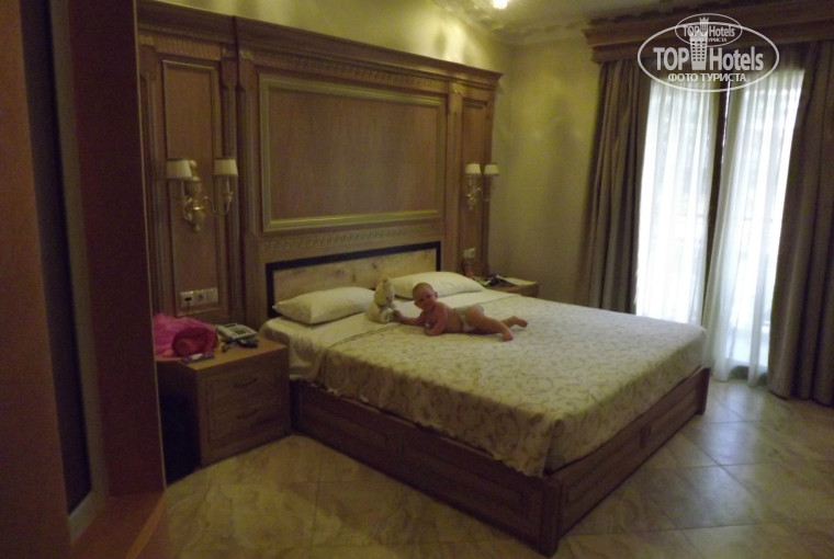 Номер был делюкс, все есть, чистота-порядок. Кровати удобные - как детская, так и взрослая(не соглашаюсь с автором предыдущего отзыва насчет маленьких кроватей - мы не карлики, но еще и место ребенку для ползанья оствалось - фото приложу). Балкон с выходом в тихий двор, столом-стульями, сушилкой. Видела отзывы про недостаток туалетных принадлежностей - оказалось неправдой(может, исправились) - мыло и кусочками, и жидкое, по два флакончика шампуни, геля, кондиционера, крема - дополняется по потреблению без всяких напоминаний. Минус поставила по одной причине - иногда неприятно пахло из слива.