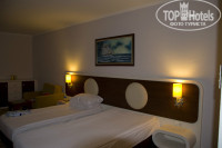 1. Ехали, как и многие, начитавшись много плохого об отеле). Прибыли в отель в 9.30 утра. На ресепции нам посоветовали пойти позавтракать, а потом подойти к стойке за ключами от номера. Мы так и сделали. Очень были рады, что не опоздали на завтрак) После завтрака готовы были ждать ключей до 14.00 как и положено, но, поев, минут через 20 поинтересовались не готов ли наш номер. К огромному удивлению и радости нам выдали ключи и предложили помочь проводить и донести вещи. Написали " к удивлению" потому, что денег в паспорта мы не клали и, благодаря отзывам некоторых граждан, были настроены настороженно к сервису отеля. Сотрудник отеля молодой человек аккуратно донёс наши вещи, показал что как работает, (карточка-ключ, сейф, телевизор). Делал он это с хорошим настроением, доброжелательно! Мы отблагодарили его пятью долларами, чему он был очень рад, и приступили к осмотру помещения) Номер, как мы и оплачивали, был двухкомнатный Family Room на последнем этаже с видом на горы, улицу и соседний отель. Комнаты огромные! В одной комнате были две односпальные кровати, в другой одна двухспальная и одна односпальная кровать. На троих нам хватило). Балкон был большой, сверху открытый для солнца и очень удобный для сушки мокрых вещей. Всё было чисто и аккуратно. Номером остались довольны).