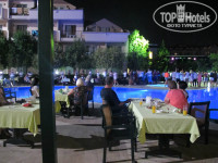 В пн в отеле живая музыка и дискотека, в четверг "турецкая ночь" и тоже диско, если хотите ужинать на улице - занимайте столик часа за 2, привяжите к стулу парео или оставьте очки\кепку и столик ваш))) остальные места в ресторане, но там душно и на веранде.