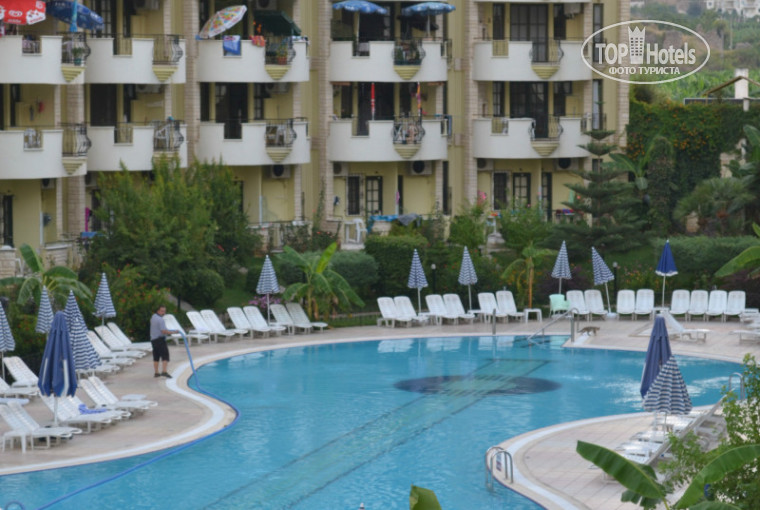 Добрый день! Отдыхали с женой в августе. В принципе готовы были к долгой поездки от аэропорта до отеля, который оказался последним из всех, куда заезжали по пути. 3 часа в автобусе быстро пролетели, гид Стефания активно рассказывала про достопримечательности Турции, обычаи и т.д. Предложила записаться на хамам за 25$ чел., многие согласились, а мы взяли у туристического агентства рядом с отелем по 15$. В автобусе предлагали воду 1$ за 2 бут, пиво 1б. - 3$. По приезду оставил водителю 3$ чаевых. В 12:30 по местному времени мы были уже в отеле, заселение по правилам в 14:00, номер забронирован был на первом этаже, к чему я был готов и доплатив 20$ нам подобрали сьют на 3 этаже, одели браслеты, отправили пообедать и в 13:00 носильщик уже показывал нам номер, по пути рассказывая, где что находится на территории. Дал 3$ - вроде улыбнулся он даже. Еще арендовали сейф за 2$ в сутки под залог 10$. Номер очень понравился, чистый, ухоженный, ванная комната тоже без нареканий, по тв 2 русских канала, остальные местные и немецкие, украинский еще музыкальный есть. В номере на удивление прохладно, кондиционер включали только когда приходили с города. Приборка ежедневно, оставлял 1$. WI-FI говорили ловит только на ресепшен, но у нас в номере работал без проблем, приятно. В первый день сначала сходили на пляж, удивились, что он практически свободный, 90% лежаков свободны, море только в первый день было спокойное, в остальные дни - постоянная волна. Заход в воду не очень, плиты и острые камни, сразу порезал палец на ноге, вода теплее, чем в бассейне. Кстати про бассейн, т.к. отель был практически занят, при чем, когда мы заезжали русский язык я слышал меньше, чем немецкий и турецкий, лежаков не хватает, даже если вы придете к 11 часам. Мы обычно после завтрака шли загорать, места уже занимают, но оставляют полотенца на лежаках, а сами могут за весь день так и не появиться. В итоге носильщик отеля такие бесхозные полотенца собирал в кучу и уносил на ресепшен, кому-то не нравилось такое, но по-моему все правильно делают. Не только о себе надо думать. Бассейн открывают в 9:00, горка работает утром и после обеда по часу или два. В бассейне чистота, каждое утро лично видел как чистят. В первый же день местный зазывала агитировал нас в турецкую баню на территории отеля и не отставал пару дней, но мы в первый же день прошлись по улице вдоль отеля и нашли туристическое агентство, Тема и Таня там организовывают экскурсии по цене почти в 2 раза дешевле, чем предлагает туроператор, взяли мы хамам по 15дол. с чел. и прогулку на яхте 35 дол. на двоих (гид просил 80(!!) на двоих). Качеством остались очень довольны. Еще на территории отеля ежедневно прогуливаются два представителя мехового магазина в Алании и достают всех кому не лень своей бесплатной поездкой за кожей и мехами, это напрягать меня начало с того момента, когда во время отдыха в номере мне как-то один из них позвонил и сказал, что машина нас ждет у отеля. Получил грубый отказ и больше не беспокоил за все время. Питание устроило, хоть отель и был заполнен, каких-то диких очередей и нехватки еды я не заметил, большой выбор холодной закуски, гарниров видов 4-5, фрукты постоянно, один раз готовили шаурму и вкуснейшую пиццу. Из алкоголя пробовали только пиво и вино, качество так себе, взял для сравнения в местном магазине банку Эфеса и Туборга по 3$ - как небо и земля от разливно