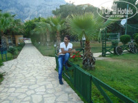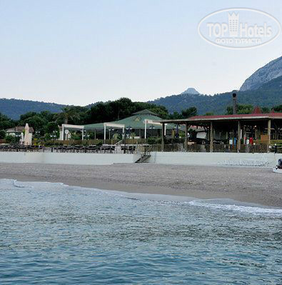 Территория замечательная! Вроде бы и небольшая, но очень зеленая, пальмочки, газончики, беседочки, опять же первая береговая линия! Пляж просторный, из-за лежаков никто не дерется, всегда всем хватало. Вход в море - галька, как и везде в Кемере, есть пирс. Море было еще прохладненькое в мае, мы купались с пирса.