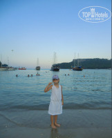Мы знали в принципе, куда едем. но наш друг был очень разочарован созерцанием не бесконечного морского горизонта, а яхт, который стояли прямо напротив нас и слева буквально в нескольких метрах. мусор действительно иногда плавает.. но само море все равно прекрасное. мы пару раз ходили купаться левее пляжа, с камней. там чистейшее море! вход пологий, в основном песок, детям очень нравится. а чуть дальше встречаются камни разных размеров, дети у нас в восторге от них были, собирали их и строили башни. Волн, кстати, практически нет, потому что это по сути бухта. Не только мы, но и дети расстроились, потому что скучали по волнам , которые были в Алании. Поэтому за волнами ходили налево - на камни ))) Пляж действительно через дорогу налево и вниз - идти минуты три, но слышали недовольных людей -мол ужас просто. для нас было нормально, даже детям не трудно. хотя конечно это уже не первая линия(
