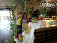 В отеле прекраснейшая еда! персонал всегда улыбается, настолько все по-доброму, живешь как в сказке! каждый раз когда приходишь в ресторан, там тебя ожидает сюрприз! это могут быть красивые фигуры вырезанные из арбузов и дынь, различные украшения! в атмосфере этой доброты и чувствуешь себя лучше! забывая обо всех проблемах.
