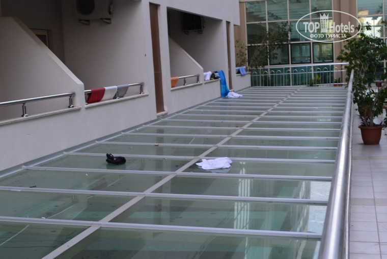 Решили отметить два юбилея в приятной обстановке с мужем,сыном и его женой.С первых минут прибывания в отеле стало ясно,что мы безнадежно ошиблись с выбором:к морю можно пройти только выйдя из отеля через центральный вход или запасной от бара на пляже(это только днем),далее по дороге метров 100(от центрального входа) до пересекающей ее дороги,перейдя через нее идешь мимо жилого строения,машин на стоянке,мусорных баков,канализационного люка,стоящих пивных бочек около бара на пляже.При этом идти нужно по щебенке.Дороги просто нет.Кстати,бар на пляже оказался одновременно а ля карт рестораном(рыбным),в который нас угораздило записаться в день нашего двойного юбилея.На стол через 20 мин. прибывания принесли то,что давали на обед в столовой,вся закуска оказалась кисловатой,еще через 15 мин принесли кисловатый суп(и это почти в 20 ч)вечера,далее мы просидели почти 30мин.,не дождавшись ничего встали и ушли поесть в столовую,чтобы не остаться вообще голодными.Думали в другом а ля карт будет лучше,но и там история повторилась,ушли через 40 мин.Номер нам достался на 1 этаже с выходом на грязнейшую стеклянную крышу,прямо перед балконом столики ресторана барбекю,где каждый вечер сидит множество людей,со всеми вытекающими....Справа магистраль и постоянный шум от машин.В номере сырость и комары,т.к. под номером баня.Окна вообще не открывали,напротив другое здание,где живут турки. На ресепшене один из служащих,кот . назвался Байрамом предложил семейный номер с выходом на бассейн за доп. оплату.и после того,как мы сказали,что платили за два отдельных номера ,а не один семейный,он разозлился и сделал все,чтобы мы просидели в ожидании номера 5 часов и дал нам самые плохие номера.Про питание писать смысла нет,т.к.уже другие написали про это.Про лифты правду пишут,дети наши застревали в них не один раз.И разве это ультра?!Мы с мужем,вернувшись с прогулки искали просто воды и не могли найти,все емкости были пусты.Анимация безобразная,пошлая,амфитеатр маленький,душный.В лобби всегда темно,свет,видимо экономят.Персонал не то,что раздраженный,а агрессивный.В столовой часто не хватало тарелок,вилок и,видимо из-за этого ,однажды к нам"подлетел"уборщик посуды,схватил тарелку у сына,который еще не закончил трапезу,из тарелки упала вилка,плюхнулась в соус,который испачкал сыну футболку,а работник ,не извинившись,бросил со злостью тарелку в тележку и помчался дальше..В общем,в последний день не хотелось выходить из номера.Ждали возвращения,как избавления от кошмара.Единственный плюс-бесплатный сейф в номере и нам повезло с уборщицей.Все,с кем мы там познакомились,так же,как и мы ждали с нетерпением скорейшего возвращения на Родину.Разве это отдых?Потраченные нервы и деньги.