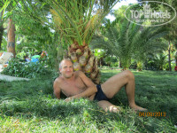 Очень зелено, безумно красиво и ухожено. Тут и пальмы, и фруктовые деревья, и кактусы, и цветы, и кустарники. Фонари, дорожки, скамейки. Приятно походить, пофотографироваться.