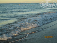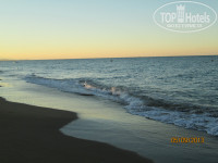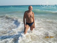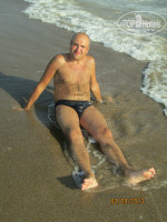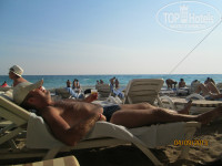 Дорога очень понравилась, выложена плиткой, ходить можно босиком. На самом деле, около 7 минут, не напрягаясь. Сам пляж снабжён лежаками, которые легко передвинуть и повернуть, зонтами, столиками. Берег в основном был песчаный, при заходе в море - галька. Весь наш отпуск море штормило, зато какое ОНО ТЕПЛЮЩЕЕ!!! Класнно, конечно, кататься на волнах. Дискомфорта от камней на дне особого не испытывали, кое-где на них даже приятней стоять, чем на песке))