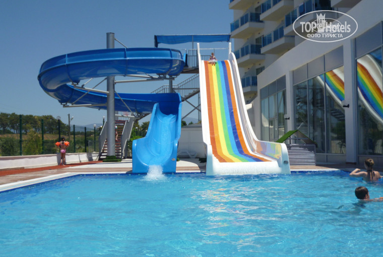 Большой бассейн спасал когда море штормило, , для детей есть горки, для малышей предусмотрен лягушатник, в отзывах пишут что была холодная вода, мы сибиряки этого не заметили, :)
