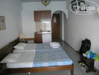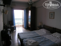 Питание без изысков, удовлетворительное в умеренном количестве. На завтрак: яйца, яичница/ омлет, оладушки, сыр, колбаса, сосиски/жареный бекон, помидоры, огурцы, сухие завтраки, джемы, масло, шоколадная паста, печеньки, апельсиновый, грейпфрутовый сок, чай, кофе, фрукты; на обед: 3-4 гарнира - макароны, рис, картошка (иногда фри), чечевица, тушенные овощи, мусака, 2-3 мясных/ рыбных блюда - курица, свинина, кролик, рыба, нагетсы, рыбные палочки, 2-3 салата, свежие овощи - всегда греческий, бывают какие-то майонезные, где майонеза больше, чем остальных ингредиентов, оливки (соленющие, такие же впрочем продаются и в магазине), фрукты 3 вида - арбуз, дыня, апельсины, виноград, мороженное, из напитков - пиво, красное и белое вино, газировка (ко всем напиткам доступ самостоятельный); на ужин примерно тоже самое плюс один вид первого (нечто жиденькое) и один вид сладкого (мусс, пахлава, пудинг, пироженки). Вид из ресторана такой же великолепный, как из нашего номера). В баре помимо кофе, пива, вина и газировки, крепкие алкогольные напитки: узо, раки, метакса. Все также в свободном доступе (сам наливаешь все, что душе угодно в любом количестве), что не могло не радовать. В снэк-тайм выносили картошку фри, печеньки, сэндвичи. Ресторан работает: завтрак 7:30-9:30, обед 12:30-14:00, ужин 19:30-21:30, бар - с 11.00 до 22.30.