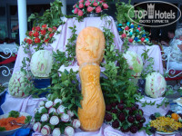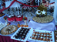В ресторане всегда было много еды на любой вкус, готовить они умеют очень хорошо!!!! много фруктов, овощей, свежих, тушеных, соленых, острых и сладких, а какие у них пирожные и торты!пальчики оближешь! повора молодцы!! Для любителей мясных блюд тут будет очень не хватать свинины и говядины, но недельку вполне можно пережить, разнообразие вкусных блюд покроет дефицит с лихвой! Курицу и индейку подавали каждый день. Из напитков были различные соки, айран, отличный кофе, горячий шоколад, пиво, вино, коньяк, коктейли... из всего перечисленного только пиво у них мягко говоря никакое..вино немного кисловато, но пить можно, коньяк хороший.