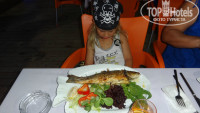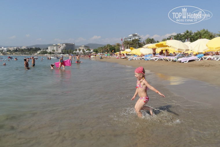 Мы отдыхали со 02.09.13-15.09.13. Купили путевку у Анекс-тура. Вылет был по плану, никаких задержек. Правда долго и по жаре ехали до отеля. Хотелось бы, раз в путевке "все включено",то это уже в автобусе бесплатная вода,но вода в автобусе платная.Размещение- заполнили анкеты, я сказала,что отмечена в акции "еду в этот отель",пошли обедать, по пути нас поймали представители СПА,все показали, рассказали и мы согласились на первое посещение. 35$ со взрослого, дочке 5 лет бесплатно,но и ее не особо потом мыли в хамаме. После обеда нам вручили ключи и проводили в номер. Номер(1304) оказался в блоке А, на 3 этаже с видом на море. Нам понравилось. Номер не большой, чистый, 3 отдельные полноценные кровати, большой балкон, телевизор,холодильник, в туалете ванна,в которую даже модно было набрать воды. Больше нам и не надо было. Отлично! Море- чистое,прозрачное и теплое. Дно песчаное,пляж песчаный. Плавала до буйков и видела дно. Прошла по берегу,вдоль соседних отелей- наш пляж оказался самый чистый и удобный. Волн было меньше всех именно на нашем пляже. Мы купались напротив рыбного ресторана, нам показалось,что именно тут самое меньшее количество камней на дне. В других местах их больше и там рыбы за ноги кусаются ))))))))))). Питание- голодный не останешься, на вкус и цвет! Большой выбор блюд. Нам не хватало блюд русской кухни,а именно борщей, щей, солянки, блинов, пельменей. Моя дочь за 2 дня до отъезда бредила пельменями. Думаю,если бы добавили в меню блюда русской кухни, туристам это бы очень понравилось. А так было- тунец, курица в разных видах, индейка, мясо ягненка, котлетки, печень, рыба на гриле, рыба в кляре, овощи с мясом несколько видов, вкусные очень, название не помню, картофель фри и пюре,макароны,спагетти, вкуснейший рис. Обалденный айран,который мы пили литрами. Женщины жарили вкуснейшие лепешки, иногда мы к ним ходили обедать. Алкоголь- нам не особо был нужен,пиво иногда и белое вино за ужином. Рыбный ресторан- запись за 2 дня вперед и рано утром, придешь после 8 утра,места не достанется. Сам ресторан- пока мы попробовали все что приносили до главного блюда,рыбу мы уже кушать не хотели,наелись,рыбой мы не насладились, это очень огорчило.Второй раз в рыбный ресторан не пошли. Официанты убирают все быстро не только в ресторане,а на всей территории принятия пищи, иногда отвернешься от блюда, поворачиваешься,а его уже нет. Аниматоры- ощущение,что люди работают 24 ч в сутки. МОЛОДЦЫ! Моя дочь просто влюбилась в Машу. Мы заходили утром,после завтрака, на детскую площадку минут на 15, Маша уже там. Не все имена аниматоров знаю,но видела их постоянно в работе. ЗДОРОВО!!!! А как дети ждали мини-диско,как танцевали и не сводили глаз с аниматоров! Работа горничной- всегда номер радовал чистотой и порядком, каждый день на постеле новый узор из покрывала. Постельное белье менялось чуть-ли не каждый день. Если вдруг хоть какое-нибудь маленькое пятнышко, постель поменяют. Полотенца всегда чистые и свежие! Очень приятно! Персонал весь улыбчивый, всегда получишь ответ. Очень нежное отношение к детям, мою Катюшку все гладили по голове, трогали за носик и щечку и спрашивали "Как дела?" Мы даже хохотали,что носик оттянут и Катя домой приедет как Буратино ))))) Шутка. СПА- очень хорошо нас расслабили,получили 6 сеансов массажа и 5 детского. Спасибо массажистам Ибрагиму, Али и Майе. 45 минут массажа ВСЕГО тела.