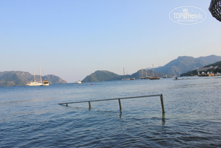 Начну с приезда.Мы прибыли в отель в 11 утра и несмотря на то,что заселение в 14.00,нас сразу разместили.Номер чистый,без изысков,но со всем необходимым (холодильник,фен,кондиционер,телевизор),ванная комната-чистая,отличный душ,ничего нигде не подтекало,все исправно работало.Убирались каждый день,меняли белье,полотенца и коврик в ванной.Меня все устраивало,при том,что чаевых горничной мы не оставляли.С видом на море не заморачивались,потому что в номере практически не бывали...Территория отеля совсем маленькая,но погулять в Мармарисе есть где,поэтому сей факт тоже никого не удручал))) Море в 10 метрах от отеля и пляж чистейший.Правда детям и студентам тут будет скучно,т.к. детской площадки нет,анимации нет,сверстников мало)))Пейзажи вокруг сказочно живописны-тут и горы,и море,и леса....