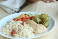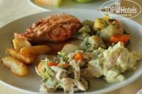 Питание отличное,разнообразное,каждый день было мясо,рыба,фрукты.Все очень вкусно приготовлено и что немаловажно, чисто в столовой (скатерти,приборы),нет очередей к раздаче,внимательные официанты.Повар,как кот Леопольд,всегда улыбается,очень обаятельный,лично следит за официантами,наполнением столовой,пробует блюда...