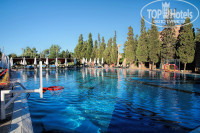 Хорошие бассейны, неплохой мини-аквапарк, 3 горки (без очередей). Бассейны разделены по зонам - спортивный, детский, "тихий" – можно выбрать, что по душе. Вода чистая. За порядком на горках и в бассейнах всегда присматривают. В детском "лягушатнике" две маленьких горки. Место на шезлонгах у бассейнов можно найти всегда. В первую неделю вода была теплая, во вторую - стала прохладной, особенно по утрам. Но, благодаря этому, стало гораздо проще вытащить ребенка из бассейна на море. И, конечно, нам понравилась "визитная карточка" отеля - бассейн-водопад с ванночками, стилизованный под Памуккале. Днем в нем приятно искупаться, посидеть в ванночках, вечером он красиво подсвечен, приятно посмотреть. В ванночки можно попасть из бассейна, или зайти сверху по лестнице. Покрытие не скользкое, можно спокойно перемещаться.