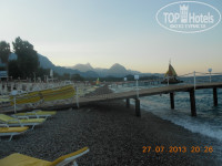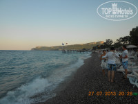 Пляж: Пляж маленький, но нам места всегда хватало (но если вас 4 чел. и вы хотите места рядом то придется встать в часов 7 утра и идти занимать места). Вход в море хороший – маленькие камушки. Мы купили себе тапки для входа, а дети сами бегали без проблем, дети купались весь отпуск. Море очень красивое и чистое.