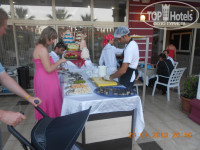 Питание: Поначалу были разочарованы в отсутствии диетического стола. Маленький ребенок у нас на безлактозной диете, поэтому ему мало что можно с общего стола. Обратились с этой проблемой к Маргарите (большое ей спасибо), и каждый обед для нашего ребенка готовили кусок вареного мяса и овощи, выносил все это нам – Шеф-повар. А утром и вечером мы готовили ему каши в микроволновке на кухне. Так что главная проблема - питание ребенка для нас была решена. Питание в отеле нормальное, не шикарное, но голодным не будешь. По утрам – каша конечно никакая, но все остальное нормальное – омлет, глазунья, оладьи, сосиски, вареные яйца, да и бутербродов можо самому наделать. Пару дней в неделю шикарный стол (и в эти дни большие столы с шоколадными конфетами – дочка в восторге), остальные пять дней очень скромно. Много фруктов. И очень очень много мороженого. (такого еще не встречала). В 17:00 к пляжу подвозили стол с арбузами, а в конце отпуска вместо арбузов привозили мороженое.