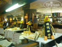Питание было просто шикарное. Мясо тушёное, вареное ,жаренное ... рыба курочка котлетки .. все виды гарниров. выпечка ... глаза разбегаются на сладком столе вообще в разные стороны. В обед и ужин на столах вино красное и белое.
