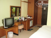 Теперь про отель. Прибыли мы туда уже ближе к 17.00, нас заселили сразу. Все оформление на рецепшене заняло несколько минуток. Про депозит уже тоже несколько раз здесь писали. Мы оставляли 50 долларов. Номер 2431 был в корпусе B на четвертом этаже. Нас туда носильщик проводил, все в номере показал, мы проверили, все ли работает. Оказалось, что все в порядке, носильщик показал номера телеканалов на русском языке, потом попросил 100 наших деревянненьких. Но мы в аэропорту обменяли небольшую сумму наших русских денежек на тайские и сторублевок у нас не оказалось. Так что дали ему баты. Номер стандартный, все, как ожидалось. Кровати стояли две, но мы их сдвинули. То, что в номере есть описывать не буду, много об этом уже писали. Мебель, конечно, старенькая. И требуется косметический ремонт. Балкон наш выходил на деревья и нас это радовало, потому что шум от бассейна не мешал. И еще хочется поблагодарить тех туристов, которые оставили на балконе веревки для белья под кондиционером, нам не пришлось решать проблему с местом для сушки одежды. Никаких насекомых у нас в номере не было. Может быть потому что высоко жили, а может быть, потому что еду убирали всегда в холодильник, а остатки завязывали в пакеты и только тогда кидали в мусорное ведро.