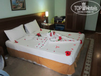 Отдыхали в первый раз за границей, ни с чем не сравнить тока с Крымом и Cочи (которые рядом не стоят даже). Мы были молодоженами в день заезда, мы расписались и сразу в самолет в костюмах, а потом в отель. Там нас очень хорошо встретили. В паспорт положили двадцатку зеленых и шоколадку «аленка» на что консьерж приятно улыбнулся и дал нам неплохой новенький номер, плюс сейф они нам подарили бесплатно (хотя он 1 евро в день). Сразу оговорюсь без знания элементарного английского очень сложно в отеле т.к. они там в Бодруме плохо знают русский. Там мало русских. В Пинаре в основном отдыхают Бельгийцы, Германцы, Чехи, Поляки и многие, процентов 5% русских было. Питание неплохое ни разу не болели животики, персонал очень жизнерадостный веселый. Также понравились аниматоры особенно Showtime это типа Камеди, которое проходят тока вечером в амфитеатре. В отеле находится 5 баров в которых наливают: пиво, водку, виски, вино и ракы (“ракы” – национальный турецкий напиток обязательно попробуйте, на любителя конечно). Во всем отеле стоят автоматы с соком (типо инвайта) и кофе-машины. Также на территории есть теннисный корд, настольный теннис, баскетбольно-волебольная площадка. На рецепшин есть халявный Wi-fi (пароль спрашивать там же) скорость соединения не очень, примерно мегабит 10, вечером очень медленно особенно когда все зайдут. Есть неплохой тренажерный зал, спа-салон, бесплатная сауна и “хамам” (турецкая баня). Кстати в спа-салоне работала русская девушка Марина огромное ей спасибо за помощь и консультацию. Отель рекомендую для тех кто любит не очень активный отдых, а так тока – позагорать, поплавать, молодежи не очень весело будет т.к. большая часть отдыхающих в возрасте. Неподалеку от отеля есть городок Тургутрейс на маршрутке 5 минут езды (стоит 3 лиры либо 2$). Рекомендую в отеле разменять на лиры немножко, чтоб доехать до города. В городе рядом с большой мечетью слева от нее есть обменник валюты, в котором курс валюты гораздо выгоднее чем в отеле, крупные суммы лучше там менять. В местных супермаркетах расчет тока лирами, а на базаре хоть чем. Рубли никто не меняет. Кстати на базаре многие турки знают русский. Ну вот в целом наш медовый месяц очень даже удался, очень не хотелось уезжать домой. На память о своем путешествии мы оставили свадебный замочек на фонарике по дороге на пляж (есть на фото). Кому не сложно, если там будите отпишитесь пожалуйста – висит он там или нет. И еще территория Бодрума принадлежала раньше Грекам, это они отдали свою территорию Турции, но велели туркам не менять их архитектуру. Вот почему там везде только белые дома и не выше двух этажей. Ездили на экскурсию Еффес-Помукале двухдневную очень понравилось, повидали четвертое чудо света. Очень прикольный был гид, имя его – Магамед, с ним не соскучишься. В общем, из всех отелей в Бодруме 4-ок очень рекомендую отель Пинара. P.S. у них в отеле висели фото реставрации отеля на 2014 год, очень красиво будет. Спасибо за внимание.