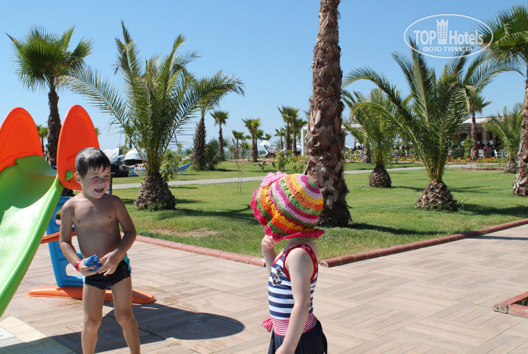Я как туристка посетила это отель вместе с семьёй в сентябре этого года, и так как я посетила заграницу впервые, то скажу так: этот отель остался в моём сердце "навечно"!!!!! Туроператор у нас был "Интурист", по нему никаких нареканий нет, встретили и доставили оперативно и быстро! Приехавши в отель, нас сразу встретил гид Абит. Очень душевный, располагающий к себе и ответственный молодой человек, с приятной внешностью!!!!! Нас сразу же разместили в номера, на следующий день с нашим гидом была встреча, все возникшие вопросы мы обсудили. Номер был комфортабельный, всё необходимое было! Даже бар бесплатный с газированными напитками. По поводу питания могу сказать что кушали мы просто СУПЕР!!!!!!! Каждый день было всё разнообразное и вкусное. Единственное что иногда смущало, так это то что в основном пища была остра! С нами был ребёнок 2,5 года, накормить всегда было чем. Есть и детский сол там, он только вечером с 19.00 до 20.00, но честно скажу, пища там была однообразная каждый день. Напитки все бесплатные, алкоголь тоже. Вино там если честно , невкусное! Мы пили коктели каждый день и шампанское. Море было тёплое, но каждый день волнистое. С погодой нам повезло, днём была жара +30, вечером правда уже к семи часам одевали кофты и штаны. Вечера там холодные! Территория отеля большая, гулять есть где! Внизу на -1 этаже есть магазинчики с сувенирами и одеждой, правда дорогие! Мы ходили в воскресенье на местный базарчик, всё купили там. Признаюсь вам что торгуются они неособо, максимум скинут доллар, два это была редкость! Ездили на экскурсию в аквариум в городе Анталии нам понравилось, ребёнка не удивили. Экскурсии у них там дорогие, мы ездили от "Интуриста" за двоих отдали 110долларов, и за ребёнка ещё 40. Правда в нашем случае мы за ребёнка не платили, у нас была договорённость. Там дети до двух лет бесплатно, выше двух-40 долларов уже. У нас ребёнок сошёл на два года, нас провели. Абит тебе отдельное спасибо! Анимации детские там были в основном на турецком и английском языке, ах да ещё на немецком. Но нашему ребёнку это вообще было неинтересно, мы на них не ходили. А вот шоу для взрослых там интересные, нам и нашему ребёнку это больше нравилось, и по русски там говорили. Вот единственный минус могу поставить за детские бассейны, они не обогревались и были без подогрева. Вода в них была холодная, у нас ребёнок там посинел:))))) Спасибо персоналу отеля, все очень приветливые, улыбчивые и отзывчивые, и ещё добродушные!!!!! Всё очень нам паонравилось, отдых был СУПЕРским! Уезжали, глаза были на "мокром месте":)))))) у нас ребёнок даже в самолёте плакал и просил "море"!-:)