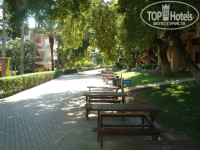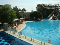Отель расположен в 2 км от города Сиде, посередине четырехкилометровой набережной, разделяющей линию пляжа и отелей. Отличное место для прогулок. Вдоль набережной рестораны и магазины. Город Сиде вообще примечательное место, небольшой сам по себе, но плотно набитый магазинами и ресторанами. Что касается магазинов, то сувениры еще ладно, но вот одежда полное барахло. Торговаться можно до скидки в 30% спокойно, крайне редко но бывает и до 50%. Цены почти нигде не фиксированы, только в аптеках и "фирменных" магазинах, в остальных 90% магазинах надо сбивать цену. Даже не думайте брать по первой заявленой цене. Еда другое дело. Продукты все местные, свежие, уражай собирают по 2 раза в год, рыба ночного улова. Стоит попробовать рыбные блюда, морепродукты, шурму, турецкое мороженое, из необычностей - тестИ кебАп (тур.). Сиде древний город и в нем сохранились сооружения которым более 1800 лет, самое большое и лучше всего сохранившееся - театр.