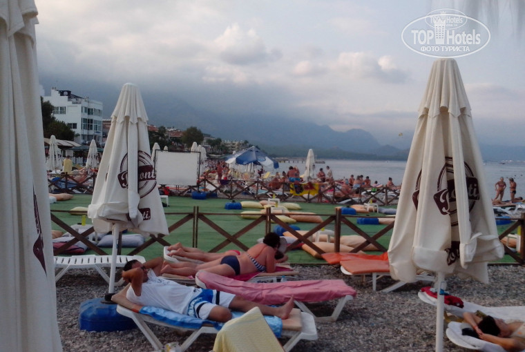 Работники пляжа - грубияны. Во время дождя была закрыта раздевалка. Попросили открыть - а нас "послали" в отель.