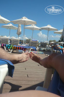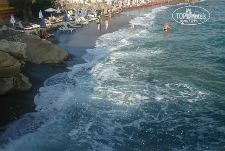 Территория отеля большая, кругом цветы, всё благоухает. Есть два бассейна на территории, один с морской водой, другой с пресной. Лежаки возле бассейна бесплатные. Мы вставали на завтрак к 8.00, по дороге занимали лежаки, к часикам 10.00 уже все лежаки были заняты. Пляжа у отеля нет, мы лежали возле бассейна, а купаться ходили на пляж соседнего отеля, в двух минутах ходьбы, так там многие делали))