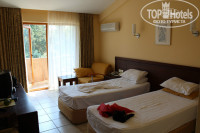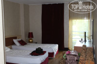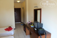 Номера. Нам пришлось заселиться в семейный номер на самом отшибе территории отеля в основном здании отеля. Как потом поняла, эти номера как перевалочная база. Туда заселяли людей до тех пор, пока не освобождался оплаченный номер. Номер чистый, большой, но очень темный. О том, чтобы почитать книжку перед сном речи быть не может. Кондиционер в этом номере не работал вообще. Вернее он жужжал, но воздух из него не шел. Было очень душно.
