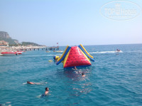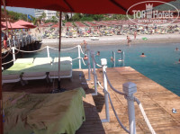 Вход с берега в море конечно не критично но есть галька. Но это Кемер. Зато море чистое прозрачное. Шикарное.