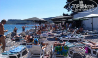 Пляж близко, примерно 5 мин ходьбы через парк с павлинами, курочками, уточками, фонтанами, ручейками. В отеле выдают полотенца (без залога), бывают с дырками, меняют через 2 дня. Приходили на пляж после 10:00-11:00, лежаки были все заняты, лежали на камешках, лежаки начинали освобождаться после 11.30, т.к. в 13.00 начинался обед (обед всего 1 час). Лежаки бесплатные, так же как и кофе, чай, какао, вода, арбуз. За арбузом надо было стоять в очереди, а некоторым даже не хватало. Арбуз чудный, хоть и розового цвета.