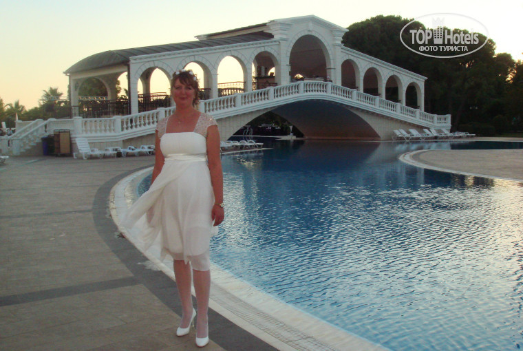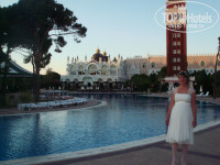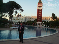 Всем доброго дня ! Были в отеле, как молодожёны. Утром в 9-00 зарегистрировали брак, отметили и в аэропорт. В 18-00 были в отеле "Venezia". На ресепшене поздравили и дали номер в башне "Campanile Tower". Девушки просились сфоткаться в номере в башне, ходили к нам вномер в башню на экскурсию. В номере подарок от отеля: фрукты,сладости и вино. На следующий день у супруги День рождения снова подарили вино, фрукты и сладости. Людей в отеле было мало, детей мало. Очередей в ресторане не было. Питание как во всех отелях-пятёрках Турции. Ходили в ресторан Veneto. A la carte. Не очень понравилось, но наелись, тем более бесплатно. Бар в лобби слабоват. Список коктелей бесплатных ограничен. Другие коктейли платные. После обеда раздавали мороженное. Работает ресторан закусок(пицца, булочки) возле пляжа. Хорошая большая зелёная территория. Есть где погулять. Хороший пляж, лежаков достаточно. Полотенца друг у друга не воровали соотечественники. Бар рядом на пляже. Ходили гулять в соседние отели Кремлин Пэлас и Топкапи Пэлас. Людей там много. Стали свидетелями того, как туристы соотечественники, жаловались на скудное и плохое питание отелей Кремлин Пэлас и Топкапи Пэлас. Недостатки отеля - это платный интернет. Wi-fi отсутствует. И в очередной раз огорчил и разочаровал отельный гид компании Pegas. Узнав, что мы в Турции не в первый раз и хотим пойти на пляж вместо информационной встречи, и экскурсии покупать у неё не будем, гид заявила : если что-то с нами случится, то к ней просьба не обращаться. Абсолютно недостойный ответ отельного гида, человека который должен помогать туристам в трудный момент. "Звезду" эту зовут - Юлия Кабаева. Не я её начальник - уволил бы сразу. Ну мы больше её после не видели и всё прошло на ура !!! Свадебное путешествие удалось !!! Фото прилагаются.