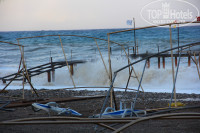 ШТОРМ. В четверг ночью началась гроза, сильный дождь,ветер. Пол дня вообще невозможно было выйти из отеля. Затопило нулевой этаж и рецепшн. Персонал молодцы, ликвидировали последствия все, менеджеры, бармены уборщики-под дождем выгребали воду. Пляж весь разбомбило, разломали тенты, пирс, шезлонги. На пляже стоял спасатель -не пускал близко к воде. На след. день часа за 2 работники очистили весь пляж от металлоконструкций, поломанных шезлонгов, но т.к. солнце уже не такое как летом- было даже здорово, пляж казался просторнее и как-то веселее что-ли. На фото видно пляж после бомбежки. Но шторм совсем не испортил отдых, было интересно посмотреть на такое явление природы.