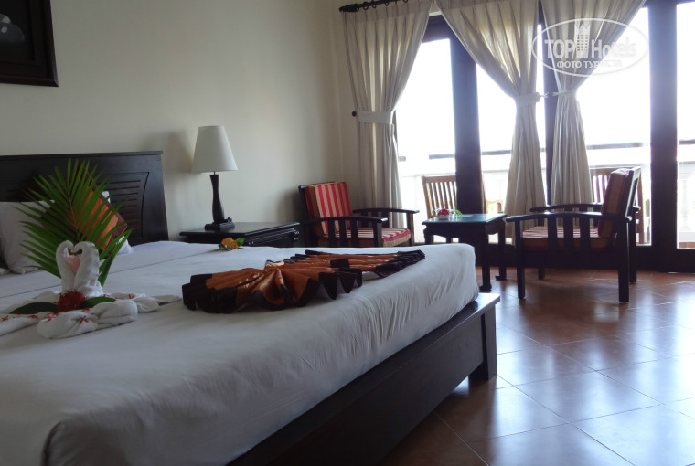 Отель-супер!Отдых отличный!Вьетнам -просто класс)Жили на 5 этаже,все чисто и цивильно,балкон с видом на океан!Территория большая,ухоженная,красивая!Завтраки отличные,многообразные!2 бассейна,оба хорошие!Океан рядом,все удобства!Кафешки рядом,мопеды на прокат есть у отеля(не брали,не понадобился),экскурсии берите во Вьетнаме,дешевле и отличные("Изумруд" по правой стороне от отеля,минут 5-10 пешком)Советую,вам понравится)