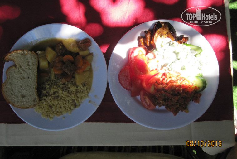 Сервис отеля 0. Из 8 дней проживания в отеле работу телевизора обеспечили на 6 день. Хозяин отеля считает, что он на море ненужен. Питание 0. Однообразное, вегитарианское. Подобие мяса было только один раз и то строго по одной порции в руки. Периодически ограничены или совсем ичезают в единственном баре отеля кофе, чай и спиртные напитки для отдыхающих. Посуда моется кое как. Бокалы с вином со вкусом анисовой водки. Чашки с ободками от неотмытого кофейного налёта. Хозяин отеля не сдержан и агресивен.