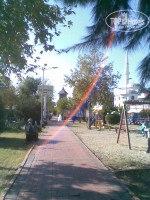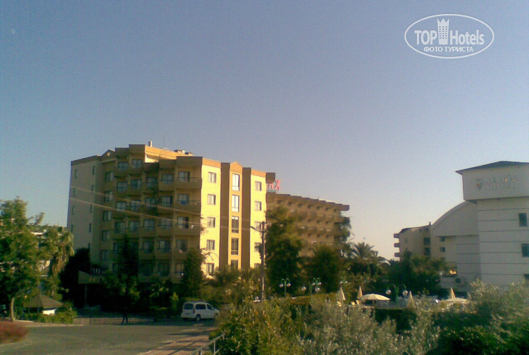 территория и расположение - на мой взгляд очень удачное, в стороне от дороги, до моря 3 минуты, рядом отели хорошего уровня, можно было попасть к ним на пляжную дискотеку, до центра поселка минут 10-15 пешком, магазинчики рядом, до самой Аланьи 15 минут на автобусе, минус (как уже писали) - край микрорайончика, пустырь рядом, отельные теплицы, т.е. вид из окна не совсем, отель получается на 2-й линии, оба корпуса перпендикулярно к морю, но не зачем сидеть в номере, мне вид не важен, сама территория небольшая, анимация, бар, бассейн между корпусами, ресторан и еще 1 бассейн за корпусом Б.