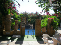 Бассейн небольшой, но уютный, вокруг него цветущие растения. Пару раз в ветреные дни загорали у бассейна.