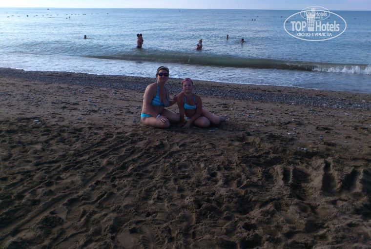 3. Пляж. Песчаный пляж, полоса прибоя - галька, вход в море галька (примерно метр-полтора), зато потом (когда заходишь по пояс) - приятный песок. Море мутное из-за песчаного дна. Не грязное. Есть пирс вполне нормальный. Мусор на пляже - это лень отдыхающих выкинуть огрызок в горшок для мусора, которых полно на пляже. Лежаков рядов 18, последние ряды всегда свободны и днем там отдыхающие детей укладывали спать, да и сами спали.