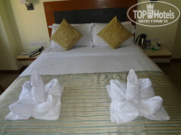 Завтраки поначалу показались скудными, но на второй день я уже перепробовала все- и фруктовый салат, и свежевыжатый сок, и какую-то перченую индийскую жесть. Немного долго приходится ждать яичницу, у них всего одна конфорка на плитке работает)) но все вкусно, посуда чистая. Из отдыхающих в основном русские. Проблем с едой нет, кафешек на пляже много, вкусно и сравнительно недорого. Вечером в отеле тихо и спокойно, периодически выключается свет, но предусмотрительно стоит свеча в номере) минут 10 и свет появляется..вай-фай..нет его..да и не нужен он. Во многих кафешках на пляже, в том же "Джонси" вай-фай бесплатно при заказе еды(просите пароль). Сим-карты дают таксисты на время отпуска, просто просите у них, они дают симку, естест-но, без денег. Мы брали у Рамеша, с ним ездили на экскурсию на водопад.