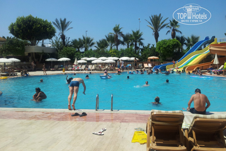 Ну начнём,приземлились,встретили,посадили в микроавтобус,едем,остановки в торговых центрах где цены как на рублёвке.едем 3-4 часа очень утомительно.приехали где то к 12 часам дня,заселение говорят что в 14.00 оставили чемоданы на ресепшене,пошли поели,денег не давали,получили номер с видом на соседний дом с лева горы с права море.Номер скажу честно, понравился,большой,чистый,всё работает,душевая комната большая,не понравилось что дают лишь один ключ от номера,и если приятель где то шляется,будешь спать на коврике.Территория маленькая,её можно сказать нет в оприоре,бассейн один,не очень большой,работает до 19.00 потом плавать не дают,хлорируют,Еда отдельная тема,однообразная не вкусная,мало мяса,и фруктов,сладостей тоже не ахти как много,что не съедается то видишь уже в переработанном виде в салатах или ещё чем,нет ранних завтраков,и поздних ужинов,еды очень мало и она никакая,хотя на пляже есть бар где не дают алкоголь но зато делают бургеры,картошку фри и лепёшки на импровизированном тандыре.Пляж и море через подземный переход,лежаков мало,они грязные,старые,зонтики рваные,зрелище удручающее,вход плохой,каменные плиты,поросшие какой то ростительностью,которая плавает тут же,грязное мутное море,ночью плавали с девушками пьяные,зашли хорошо)) Анимация аля школьный КВН,бывали смешные моменты и то потому что отдыхающие откалывали номера.Русский аниматор Дэн помоему,постоянно агитирует на поездки по клубам Алании за деньги естественно,короче стараются только для своей выгоды.Много иностранцев из Эстонии,Грузии и т.п. Короче говоря отель 3* не больше,мы с друзьями уже не парились последние дни сами организовывали себе отдых.Но впечатления остались очень не хорошие после последней поездки.