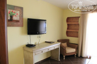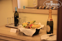 Категория номера Junior Suites Sea View, большой, светлый комфортабельный и очень уютный. По приезду нас ожидал приятный сюрприз: бутылка вина, бутылка шампанского и корзина фруктов! В мини-баре (который пополняется ежедневно и бесплатно) две банки пива, две коробочки сока и две бутылки воды. Так же присутствовала кофемашина, и чайник.