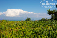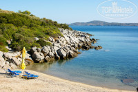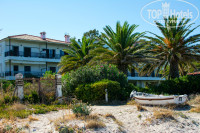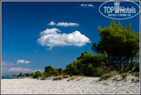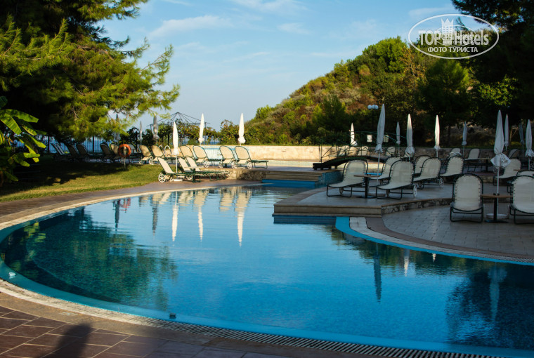 Доброго времени суток! Отдыхали в бархатный сезон, с 20 сентября по 1 октября. В Греции отдыхали первый раз. Отель очень симпатичный, нам сразу понравился. Приветливый персонал, хорошее обслуживание, хорошие уютные номера. Кормят хорошо, очень вкусно и сытно: различные легкие закуски, несколько вариантов горячего, каждый вечер что то новенькое. Вообще греческая кухня очень похожа на нашу, поэтому мне все понравилось. К экзотической кухне отношусь настороженно. Единственное было маловато фруктов, но это не проблема. В ближайших магазинах и супермаркетах поселка все можно приобрести по вполне приемлемым ценам, а арбузы так вообще гораздо дешевле чем у нас в Питере. Очень удобно, что в номерах есть небольшой кухонный уголок с рабочим холодильником. От жары в конце сентября не страдали, поэтому про работу кондиционера (он центральный) ничего сказать не могу. Сам отель состоит из нескольких корпусов, в центре бассейн и кафе. Территория ухоженная, много цветов, симпатичные лужайки, даже пальма с бананами имеется. Бассейн выполнен необычно и состоит из небольшого, метров 10-15 в длину относительно глубокого центрального бассейна и канальчика с мостиками. Что смутило, так это довольно таки прохладная вода в бассейне. Купание для особо закаленных, но таковых в отеле не оказалось. Море рядом. Отель находится не на первой полосе, но пройти нужно совсем чуть-чуть, 3 минуты. Пляж хороший, чистый, песок и мелкая галька. В минимаркете в отеле можно купить подстилки и спокойно загорать без лежаков, особенно если солнце не очень активно. Народу на пляже было немного, так что места было вдоволь. Километров в пяти южнее Ханиоти за поселком Пефкохори есть уютная песчаная бухта. Там еще располагается кемпинг. Сам поселок Ханиоти симпатичный, много ресторанчиков, баров, отелей. Хочу обратить ваше внимание, что клубная жизнь на Кассандре заканчивается в августе. В сентябре когда мы прилетели, клубы уже не работали. Хотя до этого видел отзывы и в турфирме рассказывали что еще клубы работают. Так что имейте в виду. Расстояния между поселками на Кассандре довольно большие, от 5 до 15 километров. Так что пешком особо не разгуляешься. Очень порадовало, что по полуострову регулярно (по расписанию) ходит рейсовый автобус, на котором относительно не дорого можно попутешествовать и поизучать полуостров. Такси стоит дорого. В Ханиоти можно арендовать машину от 50 евро на день в зависимости от марки ну и плюс бензин соответственно. Бензин стоит недешево, где то 1,7 Евро/л. На машине можно съездить самостоятельно в Салоники (100 км) и на соседний полуостров Ситония, на котором тоже очень много прикольных бухточек и пляжей. Также модно арендовать велики и квадрациклы. Советую понырять с маской, много разных рыб, вода чистейшая. Знакомый даже как то увидел осьминога. Но аккуратней с ежами, которых хватает на подводных камнях.